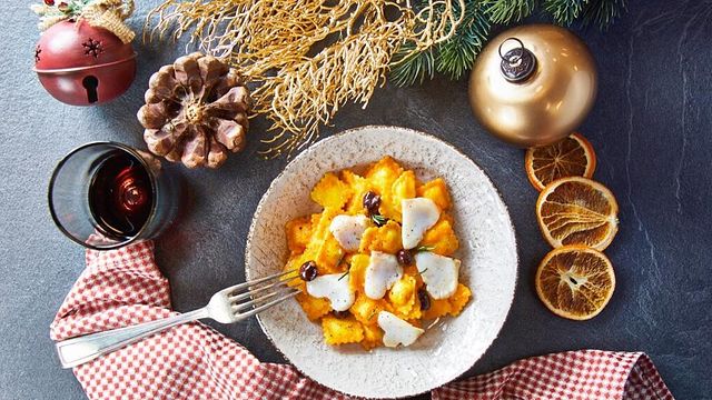 I primi piatti con il sugo di pesce sono ricchi e sostanziosi e il baccalà è un pesce versatile e facile da cucinare. Questo primo piatto è un'idea perfetta da proporre durante le feste natalizie. Per ridurre i tempi di preparazione di questa ricetta ho acquistato i tortelli di patate già pronti e il baccalà già ammollato. Questo pesce è molto saporito, ne serve quindi poco per preparare un buon sugo. Il baccalà ha elevate proprietà nutritive, contiene vitamine e sali minerali, pochi grassi ed ha un elevato contenuto di proteine, anche maggiore rispetto alla carne. Questa ricetta può essere un vero e proprio piatto unico, oppure un primo piatto per un pranzo o una cena importante.