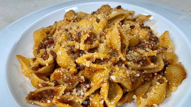 Coprite e fate cuocere per 1 ora. In un'altra pentola salate l'acqua e al bollore mettete a cuocere 300 grammi di pasta corta per 3 persone, se amate le porzioni abbondanti. Ultimate a piacere con del formaggio grattugiato. Per un'alternativa vegana potete utilizzare della granella di mandorle.
