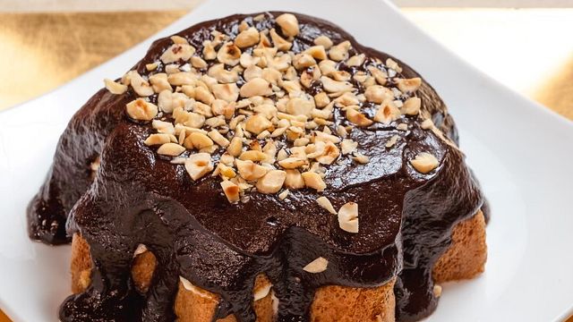Montate a parte 370 ml di panna, incorporatela alla crema. Fate una crema di cioccolato scaldando 100 ml di panna e prima che raggiunga l'ebollizione aggiungete il cioccolato amalgamate e fate sciogliere. Tagliate a fette orizzontali il pandoro, farcite con la crema chantilly e ricoprite con il cioccolato e con granella di nocciole.