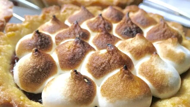 Inserite la meringa italiana in una sac à poche e decorate a piacere le crostatine. Fiammeggiate la meringa con il cannello in modo uniforme. Prima di servire spolverate con zucchero al velo.