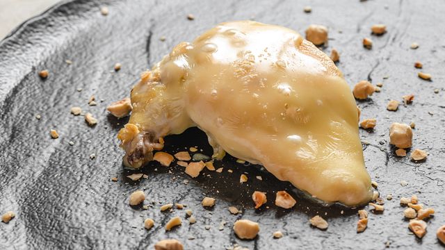 Dorate bene il pollo su entrambi i lati aggiungete un po' di acqua e create del brodetto. Su un lato della suprema mettete della fontina tagliata a fettine sottili, coprite e completate la cottura. Impiattate cospargendo con nocciole tritate.