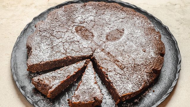 Tagliate a coltello 200 grammi di cioccolato fondente. Fatelo poi sciogliere, potete scegliere se a bagnomaria o nel microonde. Fate lo stesso con 200 grammi di burro. Sbattete 6 uova con 200 grammi di zucchero. Sempre mescolando aggiungete 200 grammi di farina di nocciole. Versate tutto in uno stampo con cerniera di 28 centimetri di diametro con carta forno.