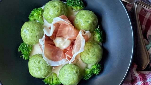 Gli Gnocchi di broccoli e patate sono una variante appetitosa dei classici gnocchi. Si accompagnano perfettamente con una svariata quantità di condimenti: a base di pesce, di carne o vegetariani. Ma la nostra versione preferita è questa con una cremosissima fonduta di Parmigiano Reggiano e fettine di Prosciutto Toscano DOP che con la sua leggera sapidità esalta la dolcezza degli gnocchi di broccoli. Un primo piatto adatto anche per un menù importante.