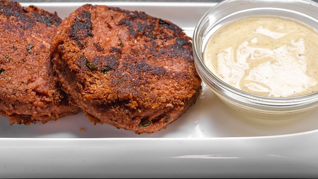Versate il composto in una ciotola, aromatizzatelo con il succo di limone e la scorza d'arancia, condite con sale, pepe e il prezzemolo tritato. Amalgamate bene il tutto. Date forma a 4 burger con un coppapasta da circa 10 cm e cuoceteli in padella con olio caldo per circa 5 minuti per lato. Scolate i burger e serviteli con una salsa allo yogurt.