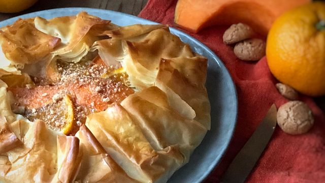 La torta dolce di zucca e arancia in pasta fillo: un delizioso dolce, semplice e veloce da preparare.