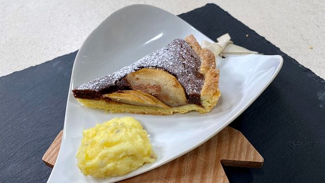 Infornate la crostata a 160 °C per 1 ora circa. Sfornatela, lasciatela intiepidire e servitela con la crema al cardamomo.