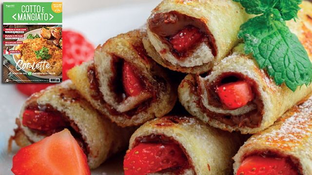 Togliete i roll dalla padella, temponateli con carta assorbente e serviteli ben caldi con altri pezzetti di fragola e zucchero a velo.