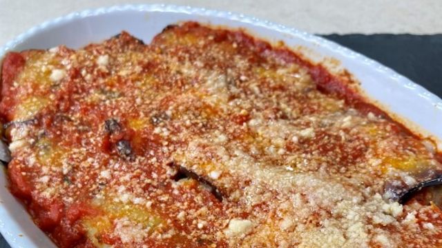 Farcite le melanzane come se fossero degli involtini e mettete in una teglia. Completate con del sugo pomodoro e basilico e formaggio grattugiato. Infornate a 180 gradi per 15- 20 minuti.