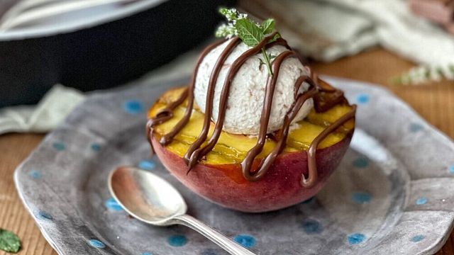 Solo tre ingredienti per queste pesche alla griglia ripiene. Un dessert semplice e veloce da preparare, che piacerà a grandi e piccini.