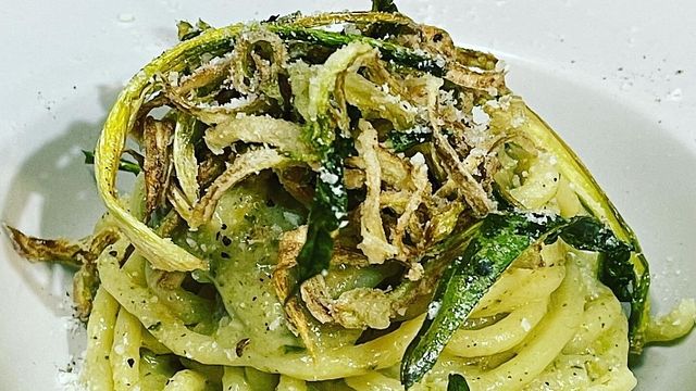 Una volta scolata la pasta, al dente, mantecarla con pecorino e una noce di burro così da formare una cremina ed essere pronta per l’impiattamento.