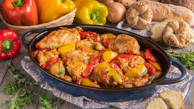 Era il 12 agosto 1967 quando Lella Fabrizi, in arte Sora Lella, lanciò il pollo con peperoni gialli e rossi arrostiti in Tv. Secondo la Sora Lella “È er pollo più forte che ce sta a Roma” e quello che avrebbe conquistato anche Napoleone: “Si Napoleone veniva a Roma se magnava il pollo che je facevo io, sta tranquillo!”. Oggi, lo chef Max Mariola reinterpreta questo piatto per un pranzo, cena o pic nic di Ferragosto come da tradizione romana.