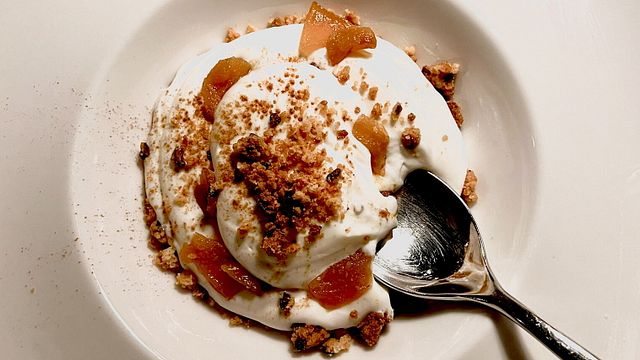 Un dolce al cucchiaio che unisce il morbido ed il croccante, la dolcezza delle albicocche candite che si tuffano in una crema agrumata ed un cruncy finale che unisce questo trittico di sapori ricordando un cannolo siciliano.