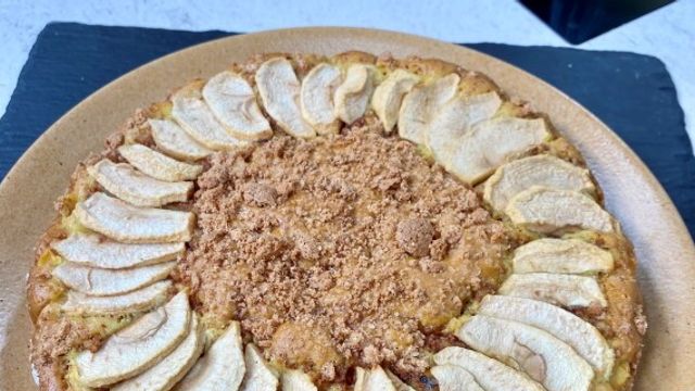 Tagliate la terza mela a fettine e mettete da parte. Versate il composto nella tortiera e fate una fila con le fettine di mele, al centro mettete gli amaretti rimasti e infornate con funzione statica a 165 gradi per 50 minuti.