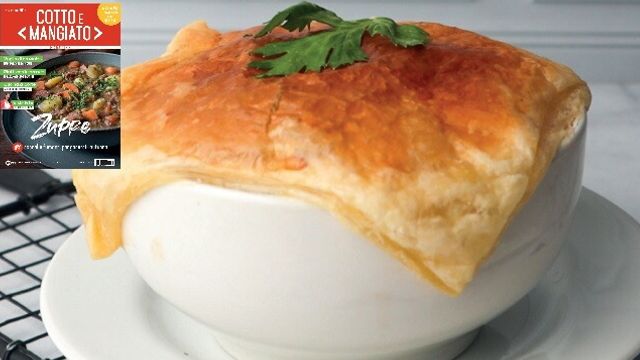 Il meteo di questi giorni ci invoglia a cucinare dei piatti caldi e sostanziosi, qualcosa che ci riporti persino all'infanzia: ecco i comfort food come le zuppe proposte nel numero di novembre di Cotto e mangiato Magazine. La minestra di pane toscana in crosta di sfoglia è un classico con un vezzo in più: un quadrato di pasta sfoglia che renderà il piatto ancora più bello e farà arrivare bollente la pietanza in tavola.