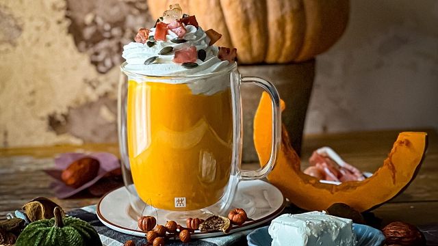 Risveglia i tuoi sensi con il cappuccino salato di zucca e crema di robiola. Un'armoniosa danza tra la dolcezza avvolgente della zucca e la cremosità vellutata della robiola. Una poesia di sapori in ogni cucchiaiata, in equilibrio perfetto tra dolcezza e cremosità.