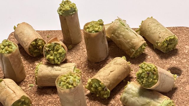 La dolcezza dei piselli, il cruncy della pasta kataifi, la nota salata del pistacchio… provate e non ve ne pentirete.