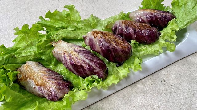 Prendete le foglie di radicchio, lavatele con cura, asciugatele delicatamente e fatele cuocere a vapore per un paio di minuti.