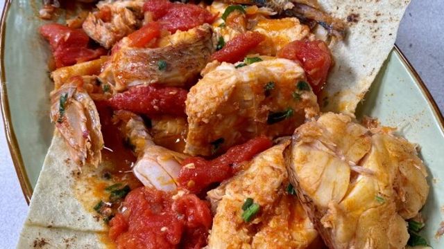 Preparate in una pentola dell'olio, uno spicchio d'aglio, del peperoncino e una cipolla tritata. Adagiate il pesce e lasciate i sugarelli per ultimi. Sfumate con il vino bianco, aggiungete i pomodori pelati sale e concentrato di pomodoro.
