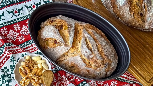 Porta l'atmosfera festiva sulla tua tavola con il Pane di Natale al vino cotto e frutta secca. Questo irresistibile pane, ricco di sapori natalizi, catturerà l'attenzione e il gusto di tutti i commensali durante le feste.