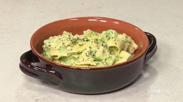 Tagliate a cimette 250 grammi di broccoli. Mettete a bagno per 12 ore 200 grammi di ceci cambiando almeno un paio di volte l'acqua. Cuocete poi in pentola a pressione con un rametto di rosmarino, saranno pronti in 30 minuti. Tenetene una parte in una ciotola e sgranateli grossolanamente con una forchetta. Gli altri frullateli con olio e acqua di cottura della pasta.