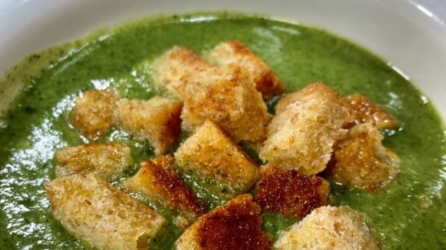 Cuocete finché le verdure sono tenere, quindi frullate la zuppa. Aggiungete sale e pepe a piacere. Accompagnate con crostini integrali saltati in padella con olio Evo.