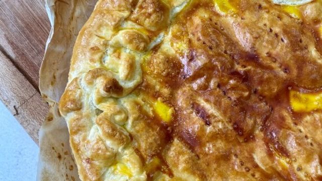 Dopo aver fatto raffreddare le erbette ed averle, al bisogno, tritate ulteriormente, unite 200 grammi di crescenza spezzettata. Preparate una sfoglia rotonda su una teglia con la sua carta forno. Ricoprite con una seconda sfoglia e bucherellate la superficie. Infornate a 200 gradi per 20 minuti.