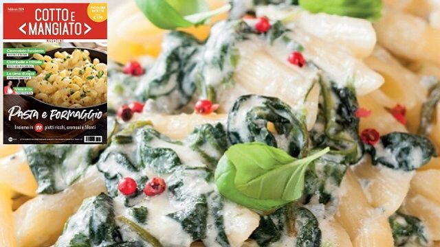 Lessate la pasta in abbondante acqua salata secondo le indicazioni riportate sulla confezione; quindi, scolatela a conditela con il formaggio e gli spinaci. Se necessario, versate un po’ d’acqua di cottura per rendere il composto cremoso.