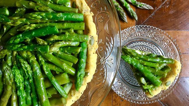 Il guscio esterno di questa torta salata senza glutine è uno scrigno goloso e croccante, arricchito dal sapore di semi di chia, zucca e girasole. L' asparago, solo sbollentato, deve essere adagiato nell'involucro. Ognuno potrà condire a piacere la sua fetta. Potete sostituire la panna acida con yogurt bianco naturale.