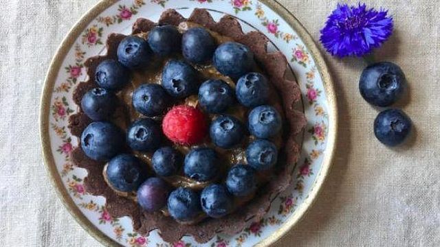 Lasciate raffreddare completamente prima di farcire. Nel frattempo preparate la mousse di avocado. Mettete la polpa del frutto, cacao e sciroppo d?acero nel frullatore sino ad ottenere una crema morbida e omogenea. Farcite le crostatine e decorate a piacere.