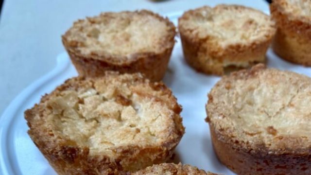 Amalgamate bene e unite gli albumi. Lasciate riposare per 10 minuti. Dopo aver imburrato e infarinato uno stampo, aggiungete lo zucchero negli spazi monoporzione e versate il composto. Fate cuocere a 200 gradi per 15 minuti.