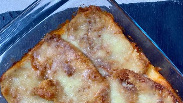 Preparate una teglia con salsa di pomodoro e basilico, adagiate i petti di pollo, distribuite un secondo strato di pomodoro. Aggiungete abbondante mozzarella (meglio quella per pizza che non rilascia acqua) tagliata a tocchetti, il formaggio grattugiato e infornate a 180 gradi per 15 minuti.