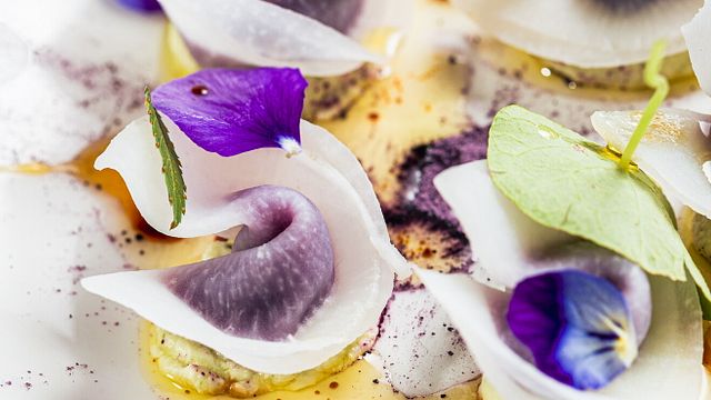 Nel suo ristorante a Torino i vegetali diventano protagonisti grazie alla sua creatività e a tecniche innovative come nella ricetta dei famosi ravioli vegan con caramello al frutto della passione.