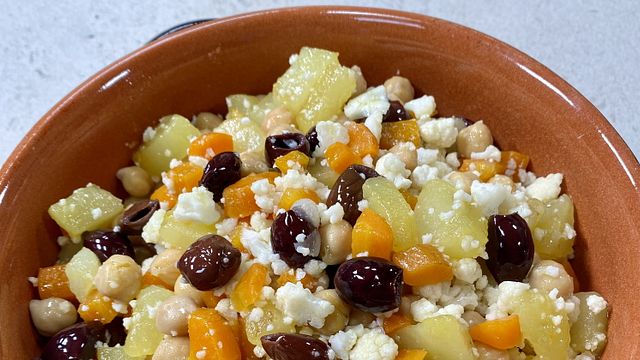 A fine cottura, saltate a fiamma alta carote e patate in modo che si formi la crosticina.Aggiungete una manciata di olive denocciolate al cavolfiore, ceci cotti e carote e patate. Infinite aggiustate di olio e sale.