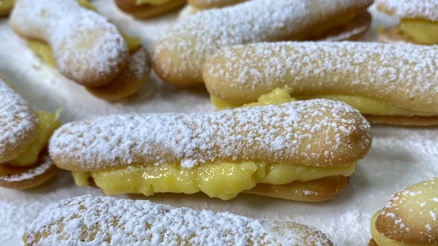 Lavora 125 grammi di burro morbido con 125 grammi di zucchero fino a ottenere una crema. Aggiungi 2 uova, continuando a mescolare. Incorpora gradualmente 250 grammi di farina fino a formare un impasto omogeneo. Metti l'impasto in una sac-à-poche e forma strisce lunghe su una teglia foderata di carta forno. Cuoci in forno preriscaldato a 180°C per circa 8-10 minuti o fino a quando i bordi sono dorati.