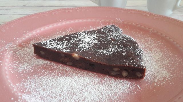 Dopo aver mescolato, aggiungete il cacao ed i pinoli. Infine aggiungete anche le uvette e mescolate il tutto. Per la cottura, mettete della carta forno su una teglia da 26 centimetri e rovesciatevi dentro l?impasto. Dopo aver cotto in forno statico a 170 gradi per 40 minuti circa, la vostra torta � pronta da gustare.