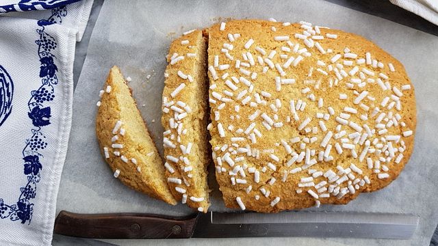 La “ciambella romagnola” è un dolce tipico della Romagna e si differenzia dalle altre “ciambelle” perché non ha un buco al centro ma viene preparata a forma di filoncino ovale e ricoperta da granella di zucchero.