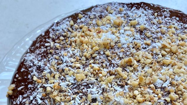 In un'altra ciotola setacciate 200 grammi di farina, 1 bustina di lievito e un pizzico di sale. Successivamente unite gli ingredienti secchi al composto di banane e uova fino ad ottenere una consistenza omogenea. Aggiungete 50 grammi di farina di cocco (o cocco grattugiato), 50 grammi di nocciole tritate e 100 grammi di cioccolato fondente a pezzetti.