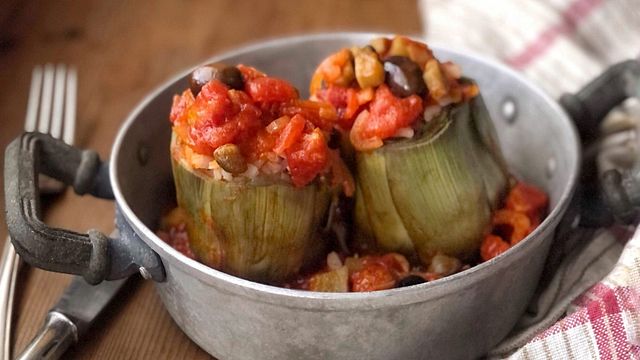 I carciofi ripieni sono un piatto molto versatile e facile da realizzare: ricetta ideale per chi ha poco tempo da dedicare ai fornelli oppure per chi non è molto esperto in cucina, ottima per riciclare del riso o del risotto avanzato. Possono essere serviti come appetitoso primo piatto ma ottimi anche per accompagnare secondi piatti leggeri.