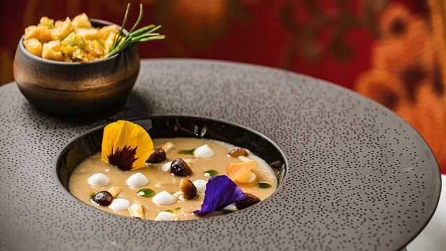Un antipasto avvolgente creato da Marcello Romano, Executive Chef di Salone Eva dell'Hotel Hassler, che propone ai suoi ospiti una cucina di tradizione, semplice e genuina, alleggerita grazie a tecniche moderne e una sensibilità nella mano.