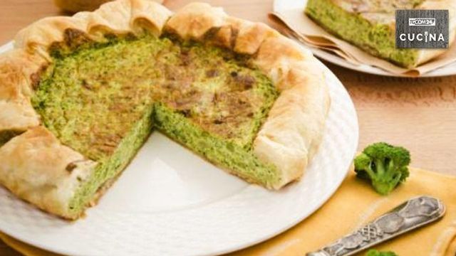 La quiche ai broccoli è una torta salata facile e gustosa preparata con una base di pasta sfoglia farcita con broccoli saltati in padella e un composto di uova, formaggio e panna.