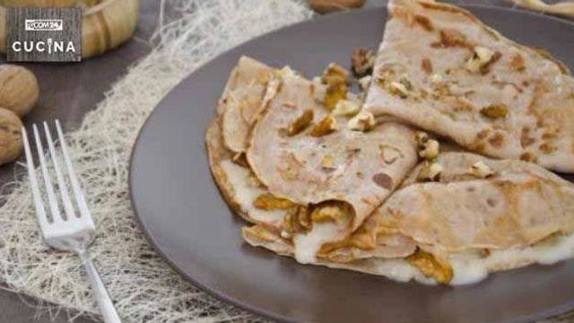 Le crepes di castagne sono un primo piatto realizzato con crepes alla farina di castagne farcite con gorgonzola e noci. Irresisistibili! Ovviamente, ho realizzato il più classico degli abbinamenti: noci e gorgonzola dolce…si sciolgono in bocca. Provate anche la fontina o il taleggio, non vi deluderanno!