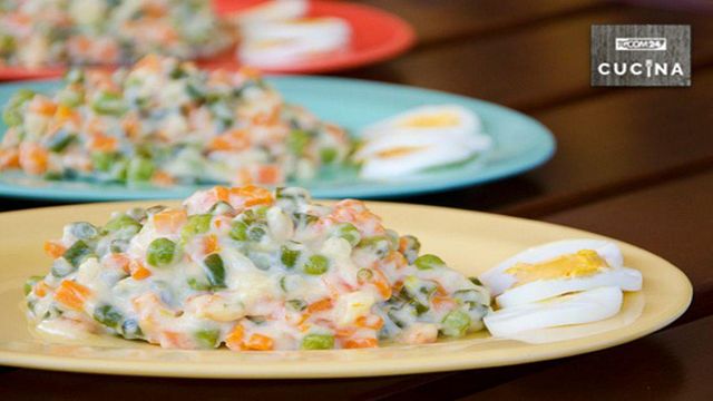 L?insalata russa � un contorno, o antipasto, molto sostanzioso preparato con un misto di verdure lessate e marinate, poi condite con la maionese. Potete scegliere quali verdure utilizzare anche se la ricetta originale dell? insalata russa prevede sempre la presenza delle patate e dei piselli. Accompagnate l? insalata russa con le fette di uovo sodo e, se preferite, con filetti di acciughe e capperi.
