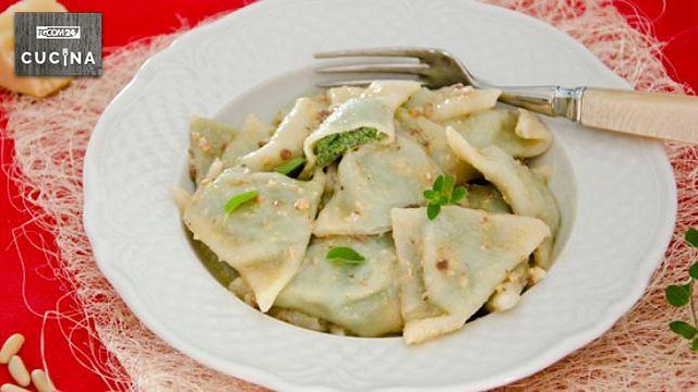 I pansoti al sugo di noci sono ravioli tipici della tradizione gastronomica della Liguria realizzati con un ripieno di magro con erbette e formaggio. La ricetta originale dei pansoti prevede un ripieno con bietole e il preboggi�n, un misto di erbe selvatiche come l'ortica, il radicchio selvatico e la borragine. Se non doveste trovarle, potrete tranquillamente usare solo le bietole e gli spinaci! L'altra particolarit� dei pansoti sta nella pasta: niente uova ma solo vino bianco! I pansoti liguri si condiscono solitamente con una delicata e gustosa salsa di noci.