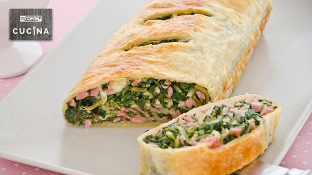 Lo strudel con cicoria e mortadella � un piatto unico gustoso e facile realizzato con pasta sfoglia farcita con cicoria, mortadella e formaggio. Un rotolo versatile e veloce, perfetto per una cena informale, un buffet o un aperitivo. Lo strudel con cicoria e mortadella si pu� arricchire anche con ingredienti diversi, sostituendo magari la mortadella con lo speck e scegliendo i formaggi, semi stagionati, che vi piacciono. Unico consiglio: strizzate benissimo la cicoria dopo averla sbollentata, altrimenti l'acqua che fuoriuscir� in cottura roviner� la consistenza e la fragranza dello strudel.