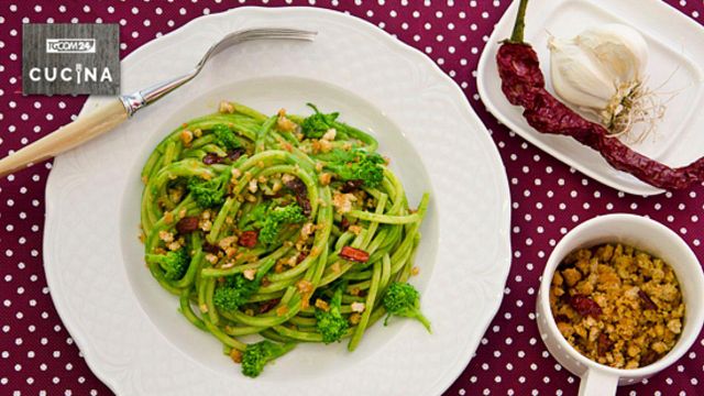 Servite gli spaghetti alla chitarra con cime di rapa immediatamente.