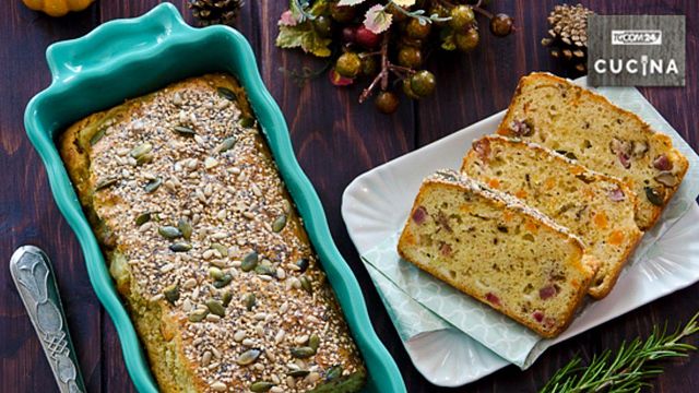 Il plumcake salato alla zucca è un gustoso piatto unico preparato con un impasto semi integrale senza burro e arricchito dalla pancetta, dalle noci e dal caciocavallo.