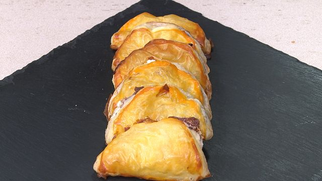 Mondate le cipolle, tagliatele a rondelle sottili e fatele soffriggere dolcemente con una noce di burro in una casseruola. Unite lo zucchero di canna, un pizzico di sale, una macinata di pepe, una foglia di alloro e l’aceto balsamico. Mescolate e fatele caramellare a fiamma bassa, con il coperchio, per circa 20 minuti, poi lasciate raffreddare. Srotolate la pasta sfoglia su un piano da lavoro, ricavate dei cerchi con un coppapasta e farciteli con le cipolle caramellate e qualche tocchetto di formaggio di capra.