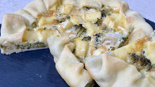 Salate, pepate e amalgamate il tutto. Una volta che i broccoli saranno croccanti, uniteli al composto di uova e formaggio. Stendete la pasta brisée in una teglia e successivamente versate il composto e chiudete bene i bordi. Infornate a 180 gradi per 30 minuti.
