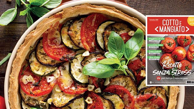 Nel numero di Cotto e Mangiato Magazine di Settembre trovate la ricetta della quiche con pomodori, melanzane e zucchine, una sfiziosità da servire ai vostri commensali.
