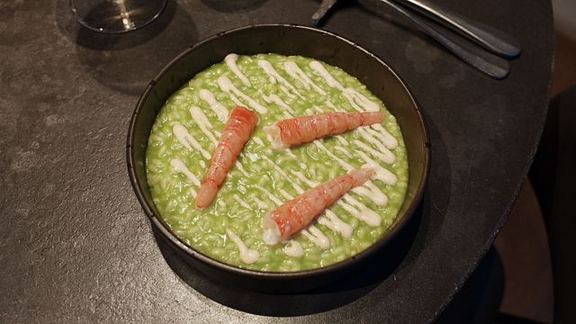 Lo chef propone una cucina dai sapori riconoscibili e gustosi, che parte dalle ricette tradizionali (soprattutto da quelle piemontesi, ma non soltanto) e le trasforma in qualcosa di più creativo ed elaborato. Come questo gustosissimo risotto.